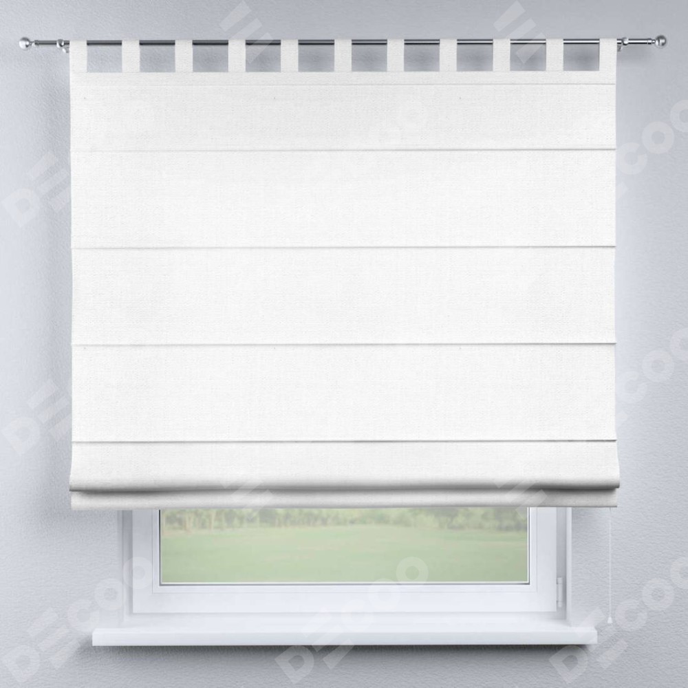 Римская штора производителя «Cortin», используется для проёма, пошита из ткани лён белый, артикул ткани 53430. Данная модель пошита на петлях, комплектуется на выбор круглым карнизом и подходит для монтажа на стену. Римская штора на петлях имеет простую систему регулировки высоты, отличительным преимуществом данной модели является простой способ монтажа. Достаточно повесить ее на трубу и штора готова!