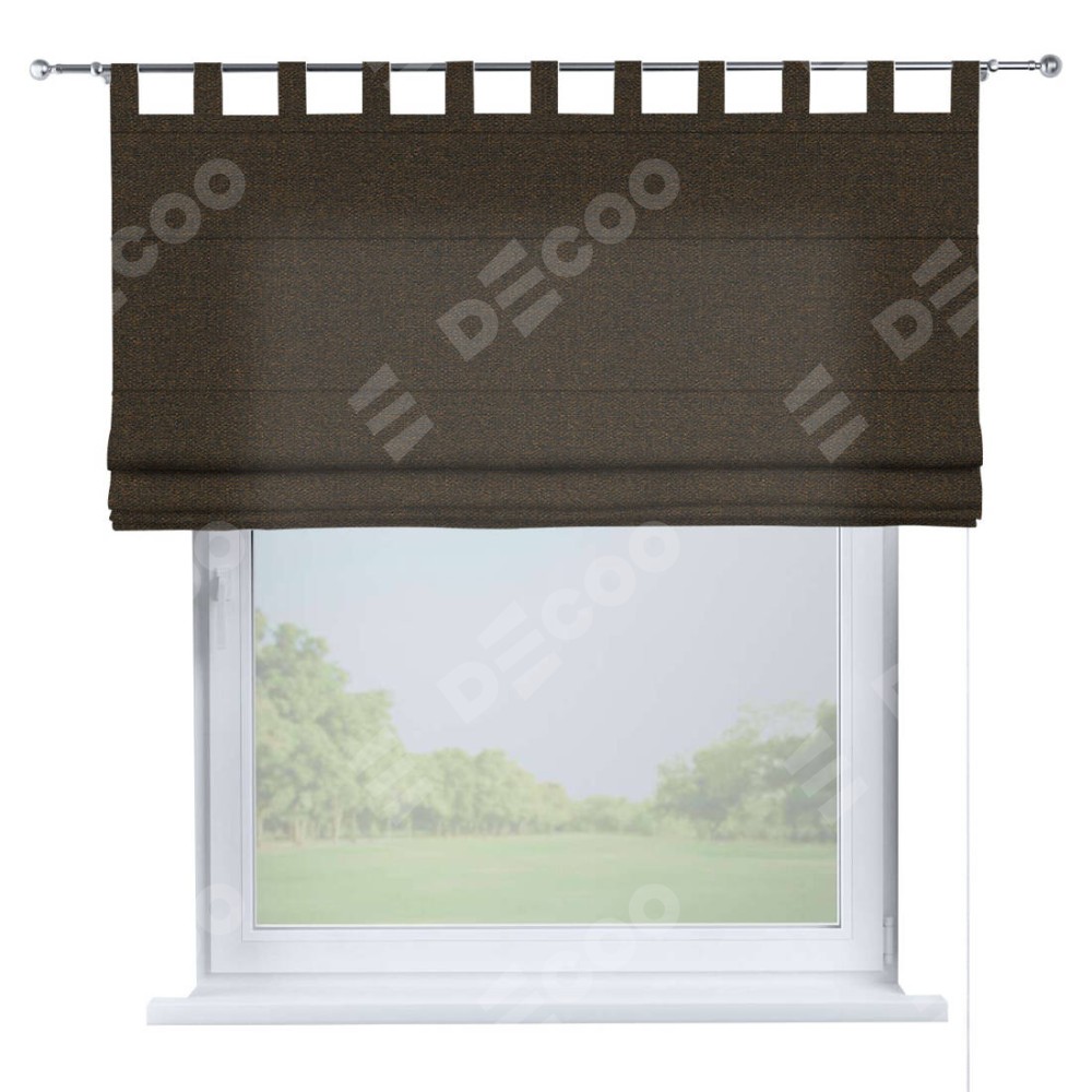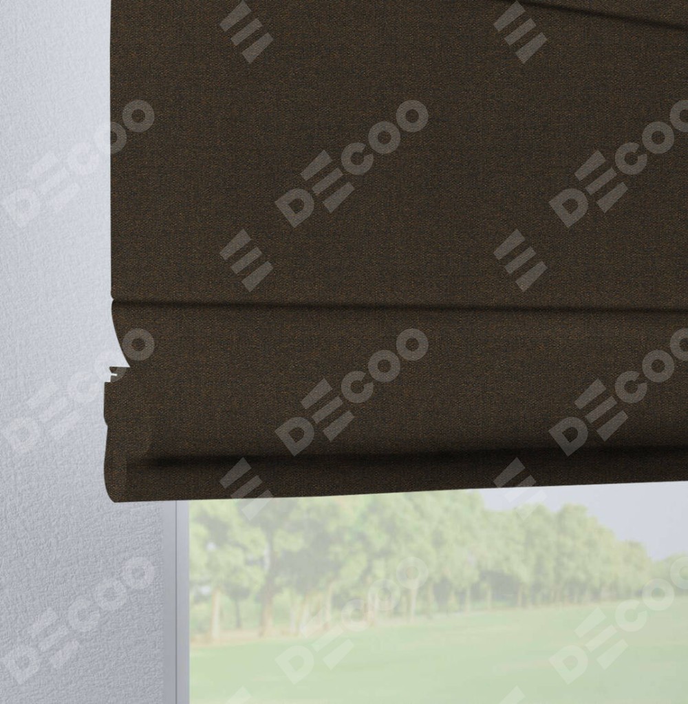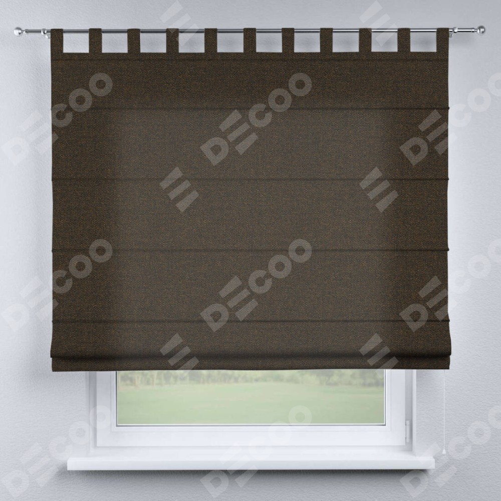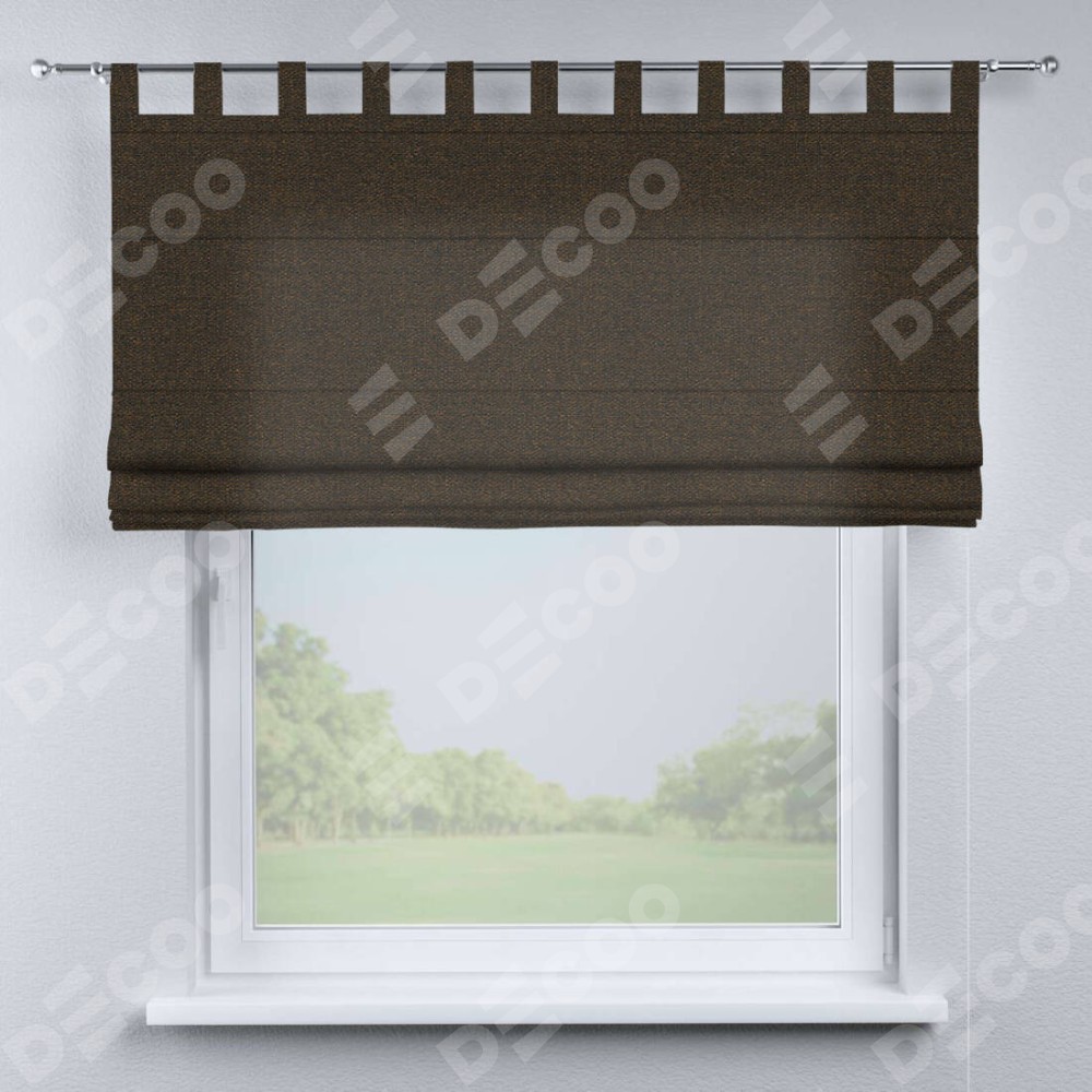 Римская штора производителя «Cortin», используется для проёма, пошита из ткани лён темно-коричневый, артикул ткани 53444. Данная модель пошита на петлях, комплектуется на выбор круглым карнизом и подходит для монтажа на стену. Римская штора на петлях имеет простую систему регулировки высоты, отличительным преимуществом данной модели является простой способ монтажа. Достаточно повесить ее на трубу и штора готова!