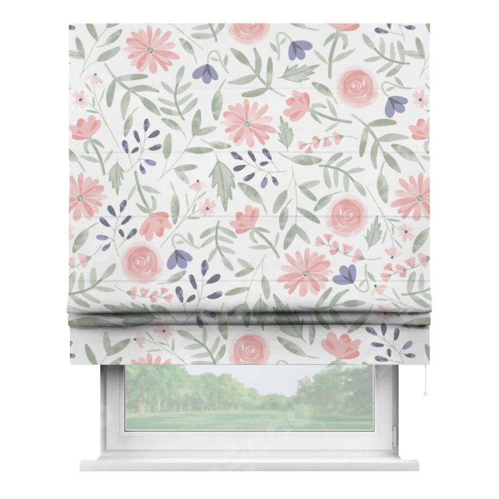Римская штора производителя «Cortin», используется для проёма, пошита из ткани блэкаут с нанесением сублимационной печати «Изысканные цветы». Имеет универсальный механизм и подходит для монтажа: на потолок, на стену и в нишу.