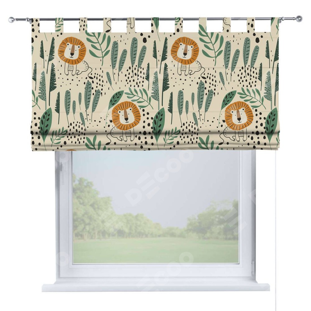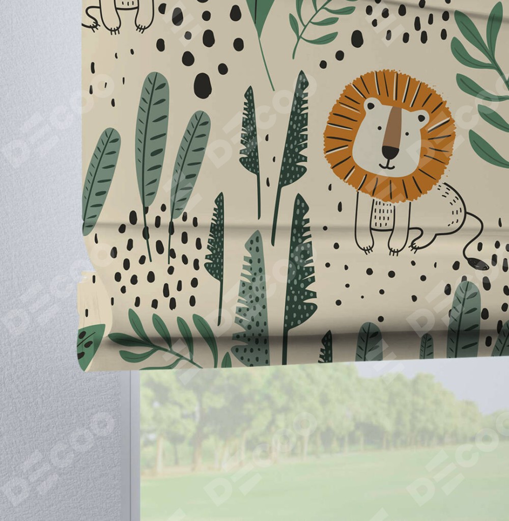 Римская штора производителя «Cortin», используется для проёма, пошита из ткани блэкаут с нанесением сублимационной печати «Лев из джунглей». Данная модель пошита на петлях, комплектуется на выбор круглым карнизом и подходит для монтажа на стену. Римская штора на петлях имеет простую систему регулировки высоты, отличительным преимуществом данной модели является простой способ монтажа. Достаточно повесить ее на трубу и штора готова!