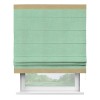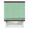 Римская штора производителя «Cortin», используется для проёма, пошита из ткани лён светло-бирюзовый, артикул 74737. Отделка шторы кантом «Горизонт», ткань для канта используется из льна разной расцветки на выбор. Имеет универсальный механизм и подходит для монтажа: на потолок, на стену и в нишу.