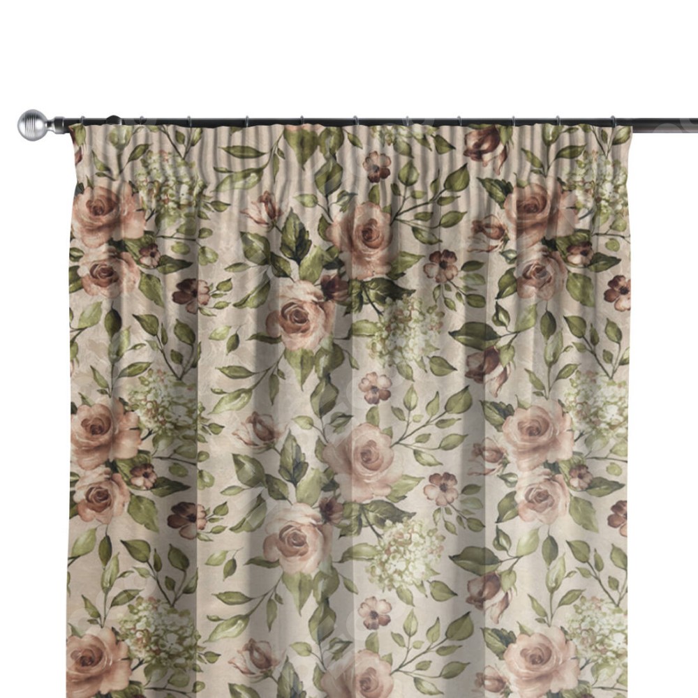 Комплект прямых штор, от производителя «Cortin», пошиты из ткани «Розы бежевые», артикул ткани 34564. С изнаночной стороны в верхней части штор пристрачивается шторная лента с декоративными складками «Карандаш». Для создания элегантных складок прямые шторы шьются по стандарту с коэффициентом 1:2 (на 100 см. ширины проёма 200 см. ширины ткани).