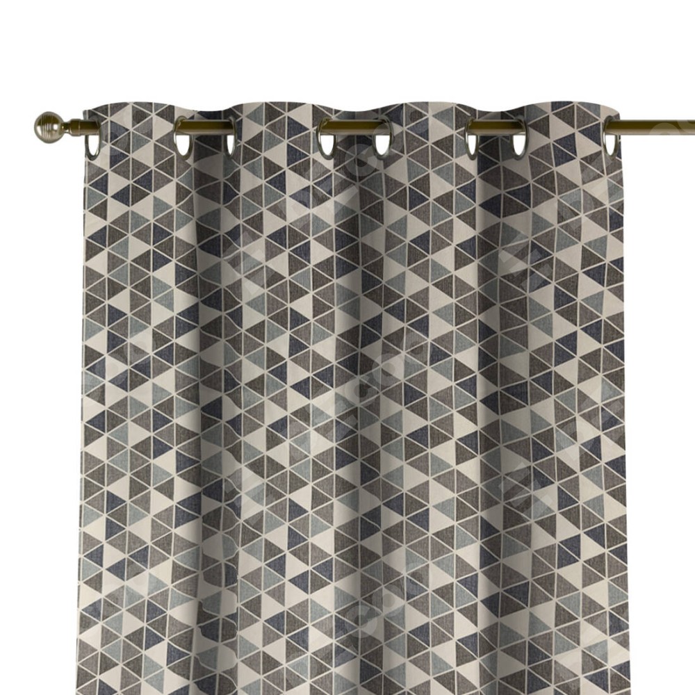 Комплект прямых штор, от производителя «Cortin», пошиты из ткани димаут «Треугольники синие», артикул ткани 23022. Данная модель пошита на люверсах, комплектуется на выбор круглым карнизом и подходит для монтажа на стену или потолок. Прямые шторы на люверсах шьются по стандарту с коэффициентом 1/2 (на 100 см. ширины проёма 200 см. ширины ткани), отличительным преимуществом данной модели является простой способ монтажа. Достаточно повесить ее на трубу и штора готова!