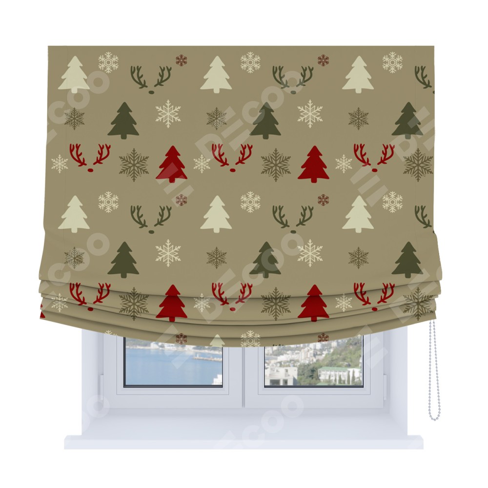 Римская штора Soft производителя «Cortin», используется для проёма, пошита из ткани блэкаут с нанесением сублимационной печати «Гармония рождества». Имеет универсальный механизм и подходит для монтажа: на потолок, на стену и в нишу. В отличие от стандартных римских штор, римская штора Soft не имеет горизонтальных вставок и нижнего отвеса. Это позволяет ткани произвольно драпироваться в свободные мягкие складки.