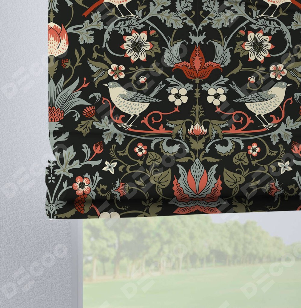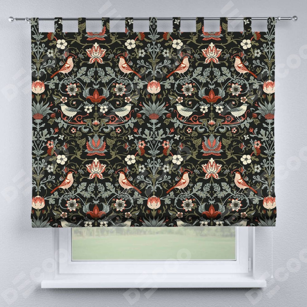 Римская штора производителя «Cortin», используется для проёма, пошита из ткани блэкаут с нанесением сублимационной печати «Зачарованные птицы». Данная модель пошита на петлях, комплектуется на выбор круглым карнизом и подходит для монтажа на стену. Римская штора на петлях имеет простую систему регулировки высоты, отличительным преимуществом данной модели является простой способ монтажа. Достаточно повесить ее на трубу и штора готова!