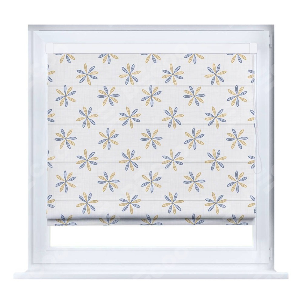 Римская штора производителя «Cortin», устанавливается на створку окна, пошита из ткани блэкаут с нанесением сублимационной печати «Ромашки кантри». Штора шьётся по индивидуальным размерам, для данного типа римской шторы возможная ширина от 35 до 150 см., высота до 250 см.