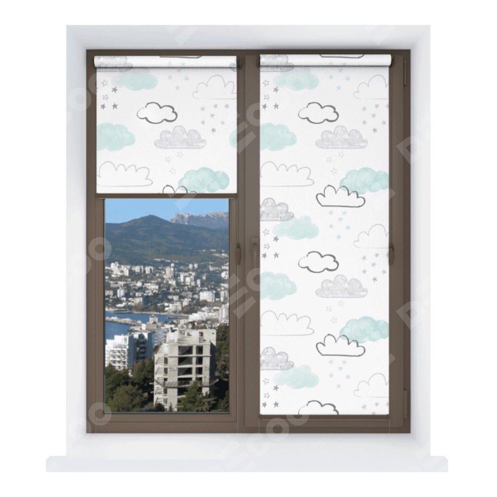 Купить Рулонная штора Мини с принтом Облака и звезды по индивидуальным размерам. Артикул товара: 222. Стоимость заказа на изделие будет зависеть от размерных характеристик и начинается от 1 500 руб. На сайте Decoo вы можете купить рулонные шторы в любых размерных вариациях.