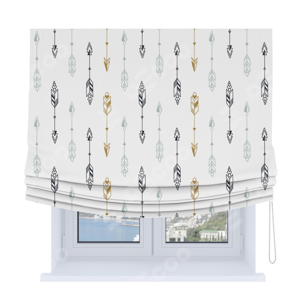 Римская штора Soft производителя «Cortin», используется для проёма, пошита из ткани блэкаут с нанесением сублимационной печати «Любимые стрелки». Имеет универсальный механизм и подходит для монтажа: на потолок, на стену и в нишу. В отличие от стандартных римских штор, римская штора Soft не имеет горизонтальных вставок и нижнего отвеса. Это позволяет ткани произвольно драпироваться в свободные мягкие складки.