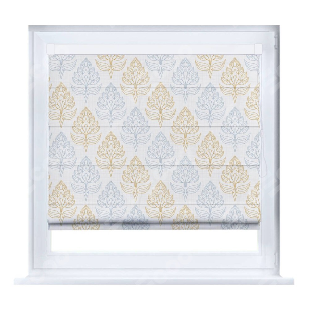 Римская штора производителя «Cortin», устанавливается на створку окна, пошита из ткани блэкаут с нанесением сублимационной печати «Цветочный медальон». Штора шьётся по индивидуальным размерам, для данного типа римской шторы возможная ширина от 35 до 150 см., высота до 250 см.