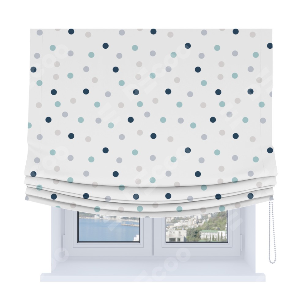 Римская штора Soft производителя «Cortin», используется для проёма, пошита из ткани блэкаут с нанесением сублимационной печати «Точки». Имеет универсальный механизм и подходит для монтажа: на потолок, на стену и в нишу. В отличие от стандартных римских штор, римская штора Soft не имеет горизонтальных вставок и нижнего отвеса. Это позволяет ткани произвольно драпироваться в свободные мягкие складки.