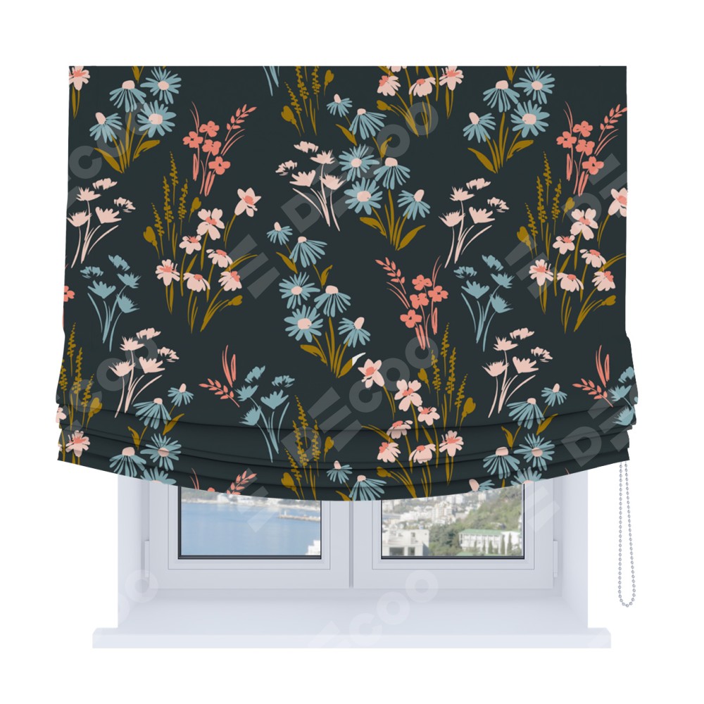 Римская штора Soft производителя «Cortin», используется для проёма, пошита из ткани блэкаут с нанесением сублимационной печати «Чарующие цветы». Имеет универсальный механизм и подходит для монтажа: на потолок, на стену и в нишу. В отличие от стандартных римских штор, римская штора Soft не имеет горизонтальных вставок и нижнего отвеса. Это позволяет ткани произвольно драпироваться в свободные мягкие складки.