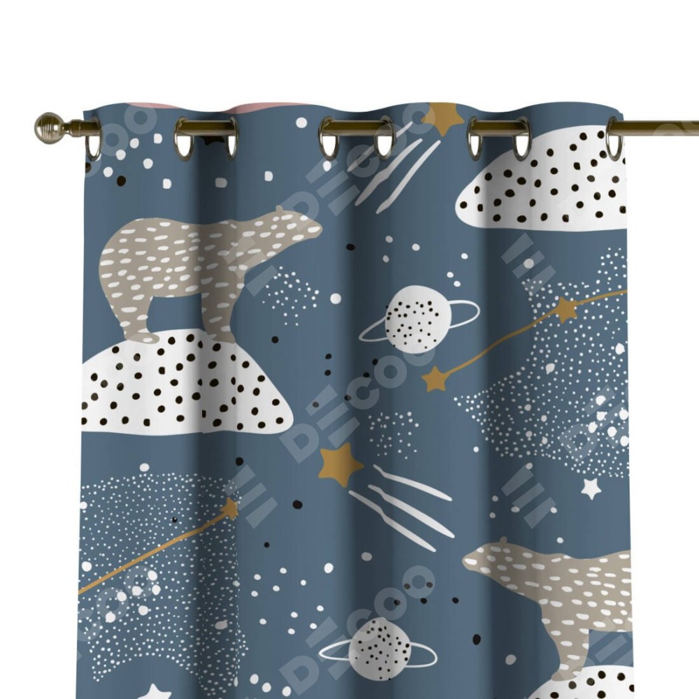 Комплект прямых штор, от производителя «Cortin», пошиты из ткани блэкаут с нанесением сублимационной печати «Белые медведи». Данная модель пошита на люверсах, комплектуется на выбор круглым карнизом и подходит для монтажа на стену или потолок. Прямые шторы на люверсах шьются по стандарту с коэффициентом 1/2 (на 100 см. ширины проёма 200 см. ширины ткани), отличительным преимуществом данной модели является простой способ монтажа. Достаточно повесить ее на трубу и штора готова!