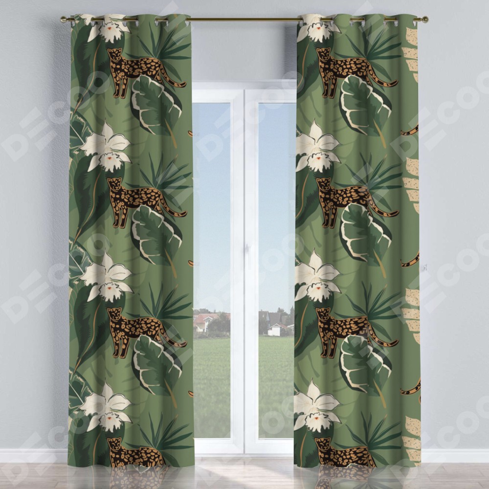 Комплект прямых штор, от производителя «Cortin», пошиты из ткани блэкаут с нанесением сублимационной печати «В тропическом лесу». Данная модель пошита на люверсах, комплектуется на выбор круглым карнизом и подходит для монтажа на стену или потолок. Прямые шторы на люверсах шьются по стандарту с коэффициентом 1/2 (на 100 см. ширины проёма 200 см. ширины ткани), отличительным преимуществом данной модели является простой способ монтажа. Достаточно повесить ее на трубу и штора готова!