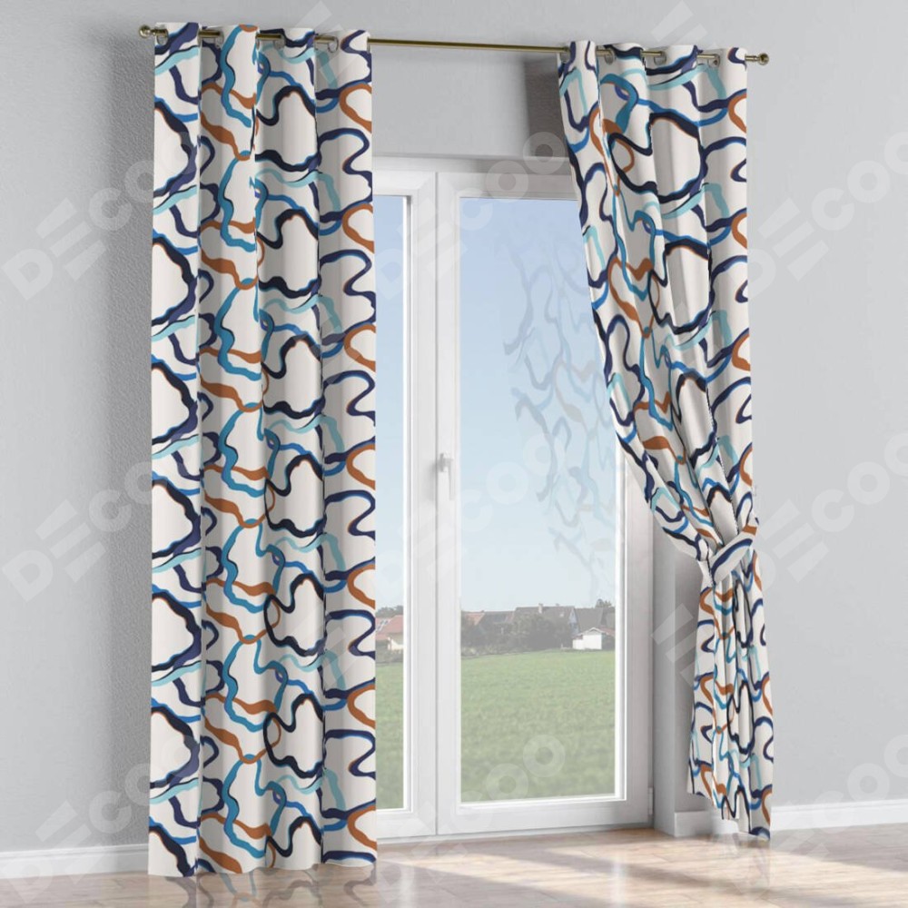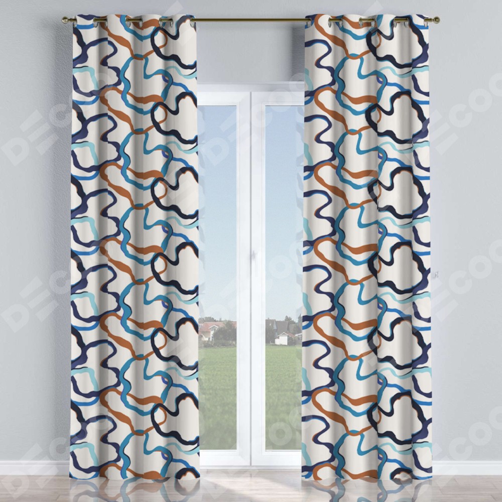 Комплект прямых штор, от производителя «Cortin», пошиты из ткани блэкаут с нанесением сублимационной печати «Волнистые ленты». Данная модель пошита на люверсах, комплектуется на выбор круглым карнизом и подходит для монтажа на стену или потолок. Прямые шторы на люверсах шьются по стандарту с коэффициентом 1/2 (на 100 см. ширины проёма 200 см. ширины ткани), отличительным преимуществом данной модели является простой способ монтажа. Достаточно повесить ее на трубу и штора готова!