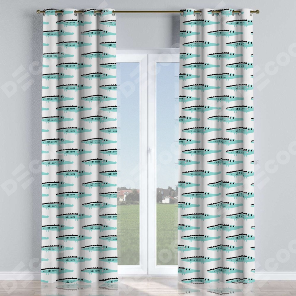 Комплект прямых штор, от производителя «Cortin», пошиты из ткани блэкаут с нанесением сублимационной печати «Мистер Крок». Данная модель пошита на люверсах, комплектуется на выбор круглым карнизом и подходит для монтажа на стену или потолок. Прямые шторы на люверсах шьются по стандарту с коэффициентом 1/2 (на 100 см. ширины проёма 200 см. ширины ткани), отличительным преимуществом данной модели является простой способ монтажа. Достаточно повесить ее на трубу и штора готова!