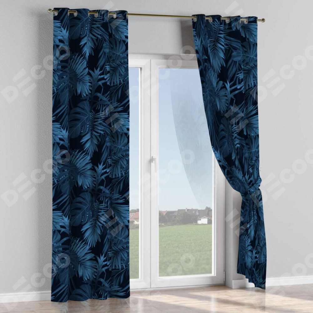 Комплект прямых штор, от производителя «Cortin», пошиты из ткани блэкаут с нанесением сублимационной печати «Ночные джунгли». Данная модель пошита на люверсах, комплектуется на выбор круглым карнизом и подходит для монтажа на стену или потолок. Прямые шторы на люверсах шьются по стандарту с коэффициентом 1/2 (на 100 см. ширины проёма 200 см. ширины ткани), отличительным преимуществом данной модели является простой способ монтажа. Достаточно повесить ее на трубу и штора готова!