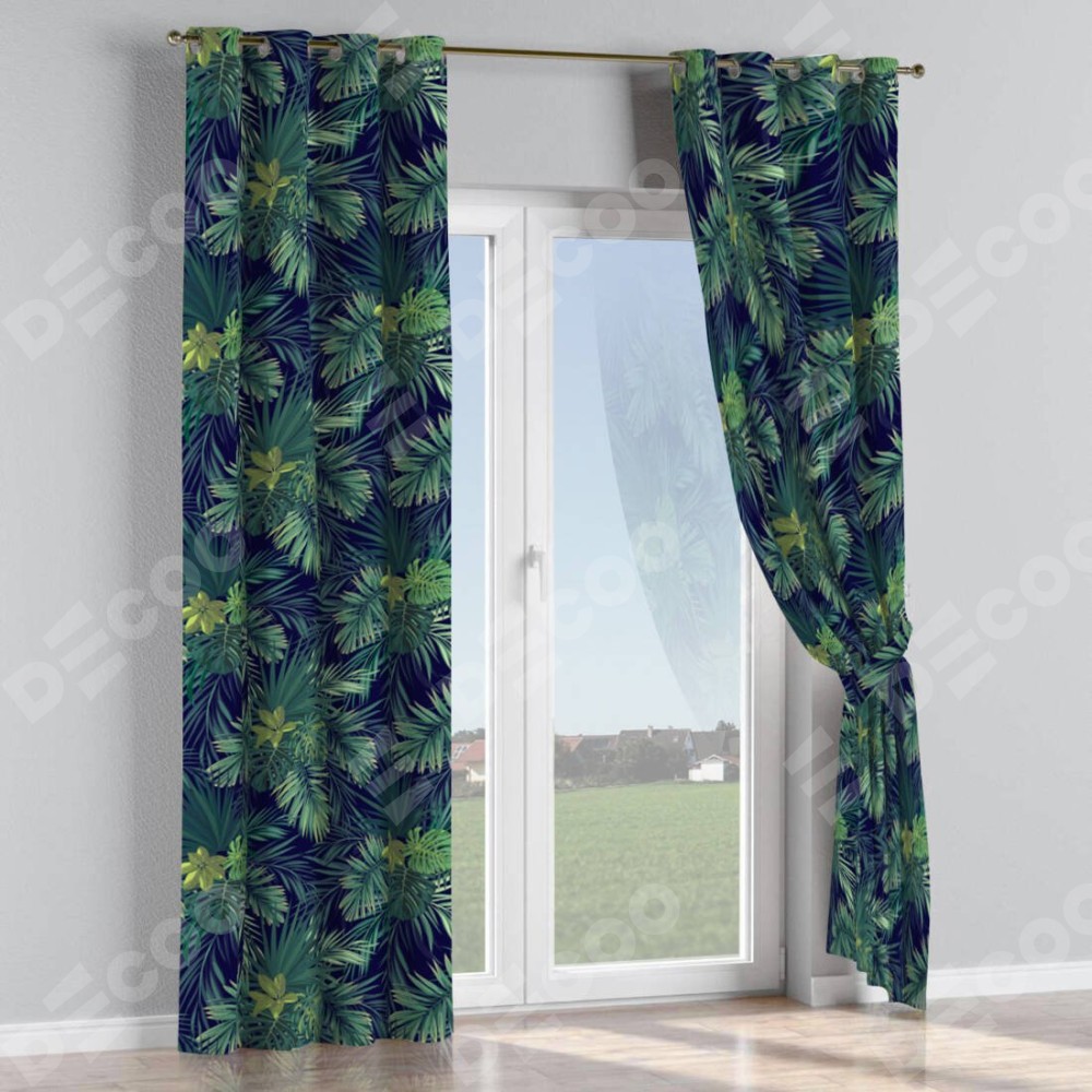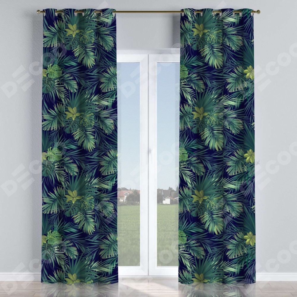Комплект прямых штор, от производителя «Cortin», пошиты из ткани блэкаут с нанесением сублимационной печати «Пальмовые листья». Данная модель пошита на люверсах, комплектуется на выбор круглым карнизом и подходит для монтажа на стену или потолок. Прямые шторы на люверсах шьются по стандарту с коэффициентом 1/2 (на 100 см. ширины проёма 200 см. ширины ткани), отличительным преимуществом данной модели является простой способ монтажа. Достаточно повесить ее на трубу и штора готова!