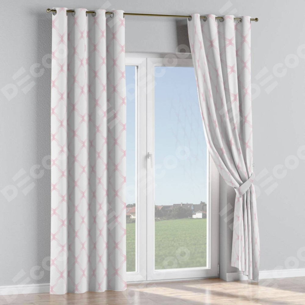 Комплект прямых штор, от производителя «Cortin», пошиты из ткани блэкаут с нанесением сублимационной печати «Розовые ромбы». Данная модель пошита на люверсах, комплектуется на выбор круглым карнизом и подходит для монтажа на стену или потолок. Прямые шторы на люверсах шьются по стандарту с коэффициентом 1/2 (на 100 см. ширины проёма 200 см. ширины ткани), отличительным преимуществом данной модели является простой способ монтажа. Достаточно повесить ее на трубу и штора готова!