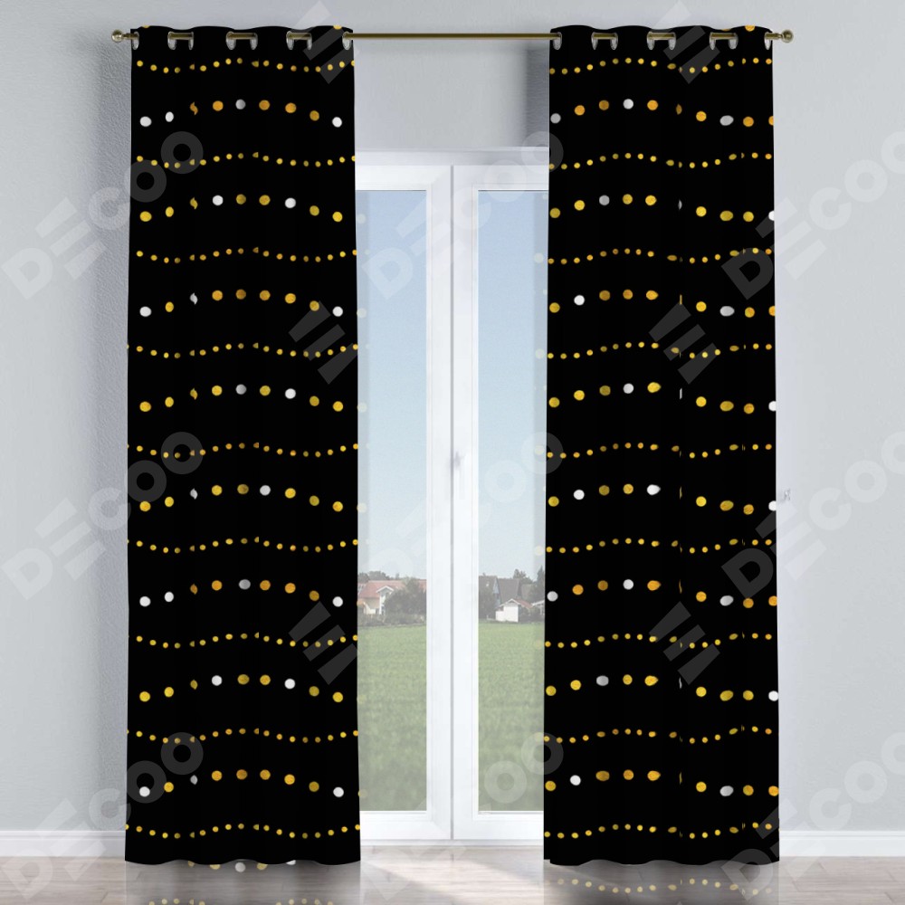 Комплект прямых штор, от производителя «Cortin», пошиты из ткани блэкаут с нанесением сублимационной печати «Яркие огоньки». Данная модель пошита на люверсах, комплектуется на выбор круглым карнизом и подходит для монтажа на стену или потолок. Прямые шторы на люверсах шьются по стандарту с коэффициентом 1/2 (на 100 см. ширины проёма 200 см. ширины ткани), отличительным преимуществом данной модели является простой способ монтажа. Достаточно повесить ее на трубу и штора готова!