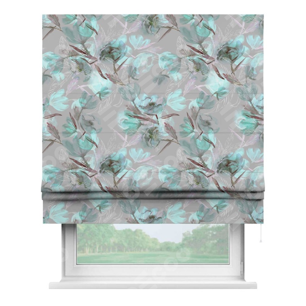 Римская штора производителя «Cortin», используется для проёма, пошита из ткани блэкаут с нанесением сублимационной печати «Цветочная акварель». Имеет универсальный механизм и подходит для монтажа: на потолок, на стену и в нишу.