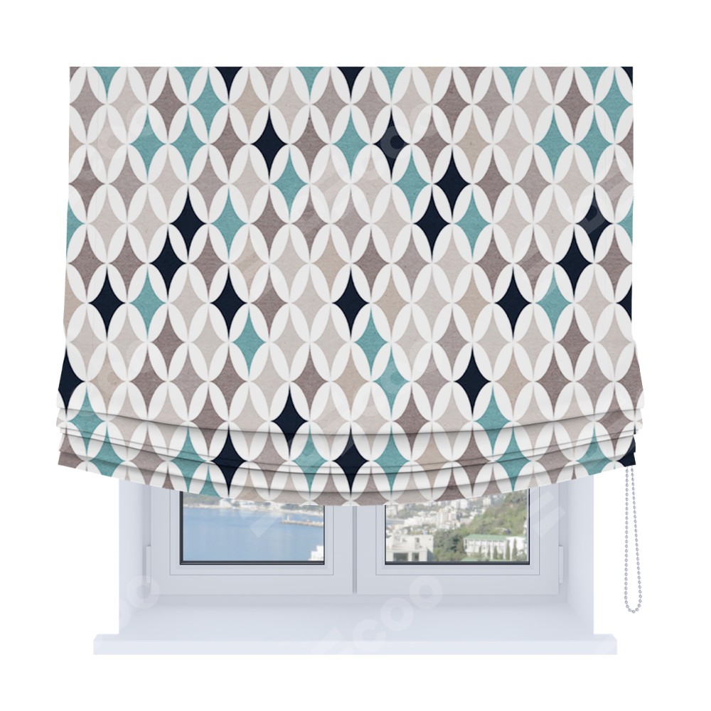 Римская штора Soft производителя «Cortin», используется для проёма, пошита из ткани блэкаут с нанесением сублимационной печати «Орнамент кристалл». Имеет универсальный механизм и подходит для монтажа: на потолок, на стену и в нишу. В отличие от стандартных римских штор, римская штора Soft не имеет горизонтальных вставок и нижнего отвеса. Это позволяет ткани произвольно драпироваться в свободные мягкие складки.