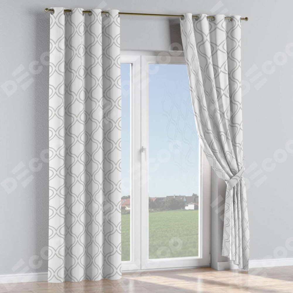 Комплект прямых штор, от производителя «Cortin», пошиты из ткани блэкаут с нанесением сублимационной печати «Тайны востока белый». Данная модель пошита на люверсах, комплектуется на выбор круглым карнизом и подходит для монтажа на стену или потолок. Прямые шторы на люверсах шьются по стандарту с коэффициентом 1/2 (на 100 см. ширины проёма 200 см. ширины ткани), отличительным преимуществом данной модели является простой способ монтажа. Достаточно повесить ее на трубу и штора готова!