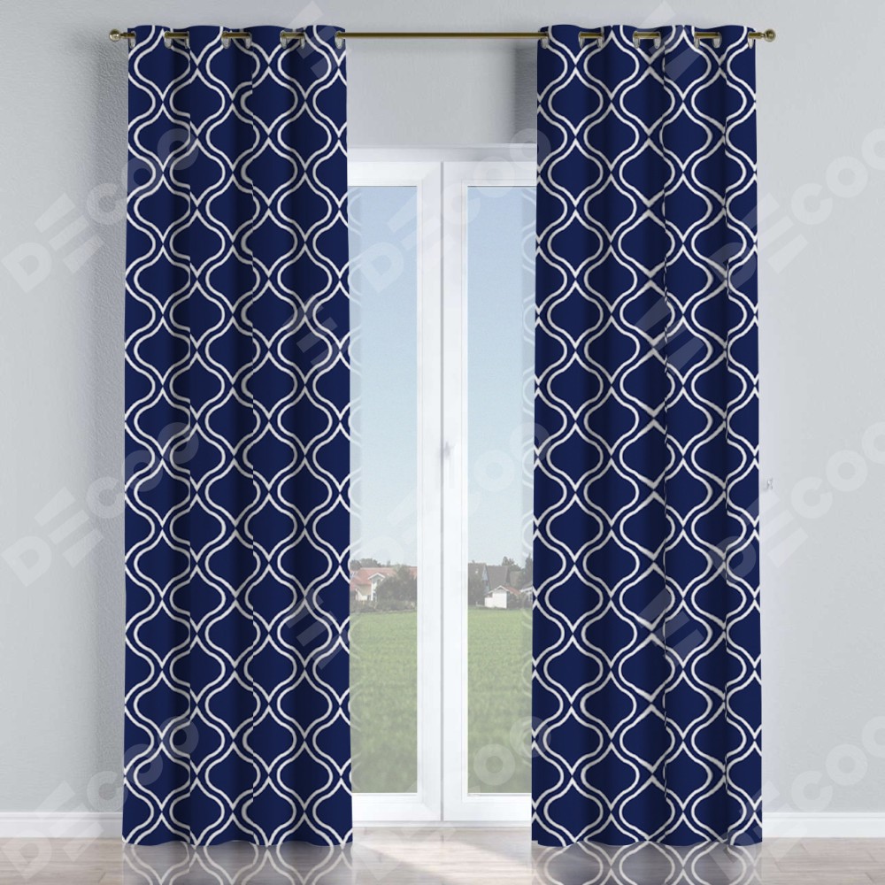 Комплект прямых штор, от производителя «Cortin», пошиты из ткани блэкаут с нанесением сублимационной печати «Тайны востока синий». Данная модель пошита на люверсах, комплектуется на выбор круглым карнизом и подходит для монтажа на стену или потолок. Прямые шторы на люверсах шьются по стандарту с коэффициентом 1/2 (на 100 см. ширины проёма 200 см. ширины ткани), отличительным преимуществом данной модели является простой способ монтажа. Достаточно повесить ее на трубу и штора готова!