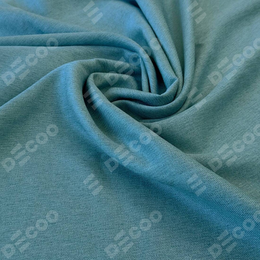 Комплект прямых штор, от производителя «Cortin», пошиты из ткани стиф димаут бирюзовый, артикул ткани 18196. С изнаночной стороны в верхней части штор пристрачивается шторная лента с декоративными складками «Кустик». Для создания элегантных складок прямые шторы шьются по стандарту с коэффициентом 1:2 (на 100 см. ширины проёма 200 см. ширины ткани).