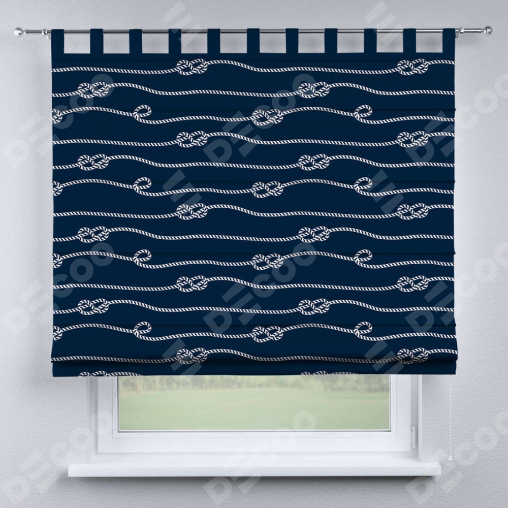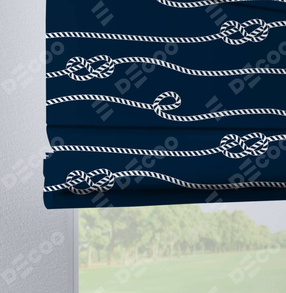 Римская штора производителя «Cortin», используется для проёма, пошита из ткани блэкаут с нанесением сублимационной печати «Морской узел». Данная модель пошита на петлях, комплектуется на выбор круглым карнизом и подходит для монтажа на стену. Римская штора на петлях имеет простую систему регулировки высоты, отличительным преимуществом данной модели является простой способ монтажа. Достаточно повесить ее на трубу и штора готова!