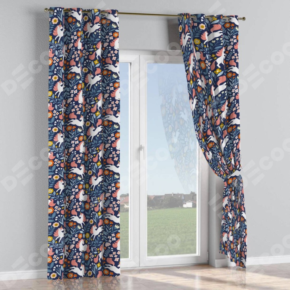 Комплект прямых штор, от производителя «Cortin», пошиты из ткани блэкаут с нанесением сублимационной печати «Цветы и единороги». Данная модель пошита на люверсах, комплектуется на выбор круглым карнизом и подходит для монтажа на стену или потолок. Прямые шторы на люверсах шьются по стандарту с коэффициентом 1/2 (на 100 см. ширины проёма 200 см. ширины ткани), отличительным преимуществом данной модели является простой способ монтажа. Достаточно повесить ее на трубу и штора готова!
