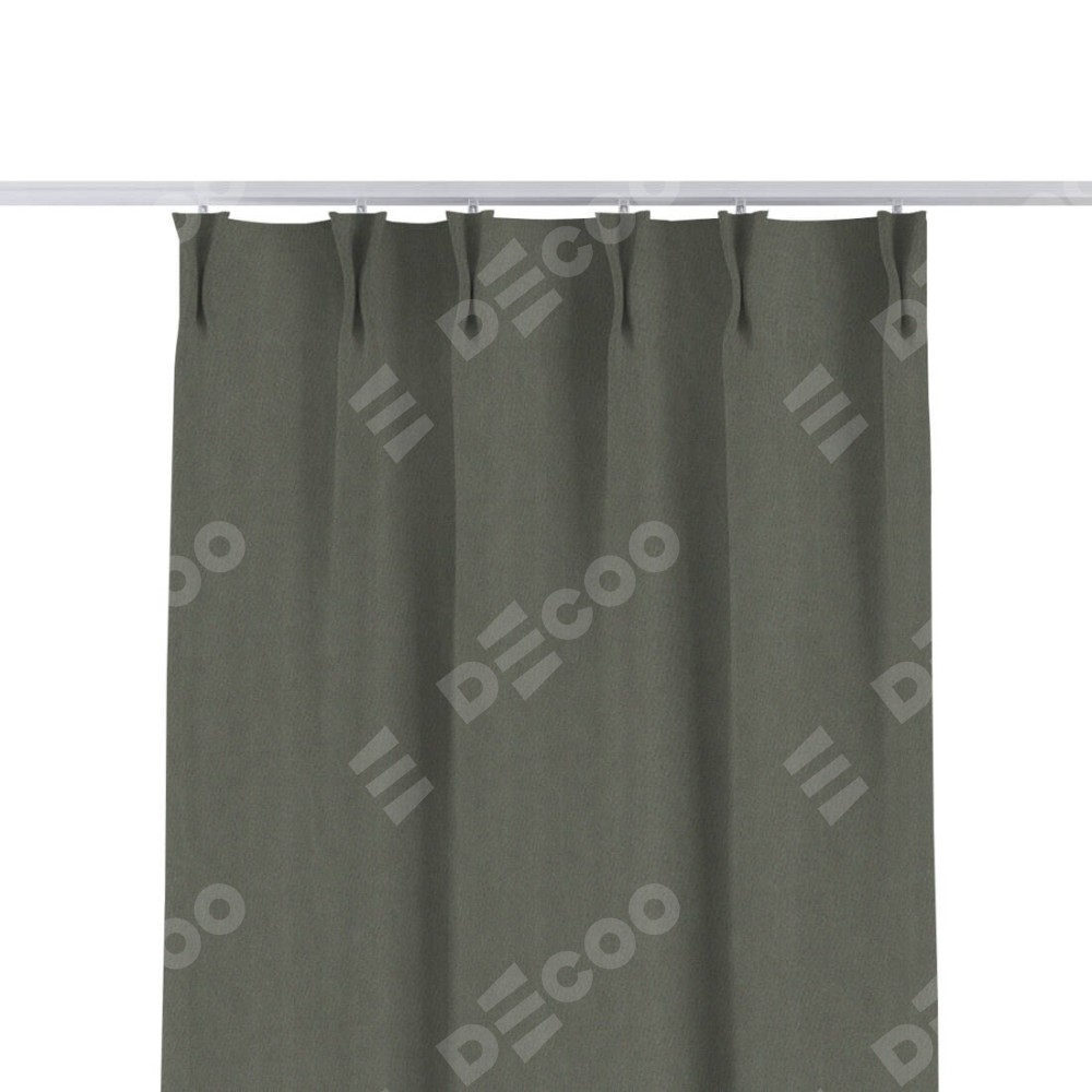 Комплект прямых штор, от производителя «Cortin», пошиты из ткани блэкаут однотонный тёмно-серый, артикул ткани 29332−1. С изнаночной стороны в верхней части штор пристрачивается шторная лента с декоративными складками «Кустик». Для создания элегантных складок прямые шторы шьются по стандарту с коэффициентом 1:2 (на 100 см. ширины проёма 200 см. ширины ткани).