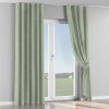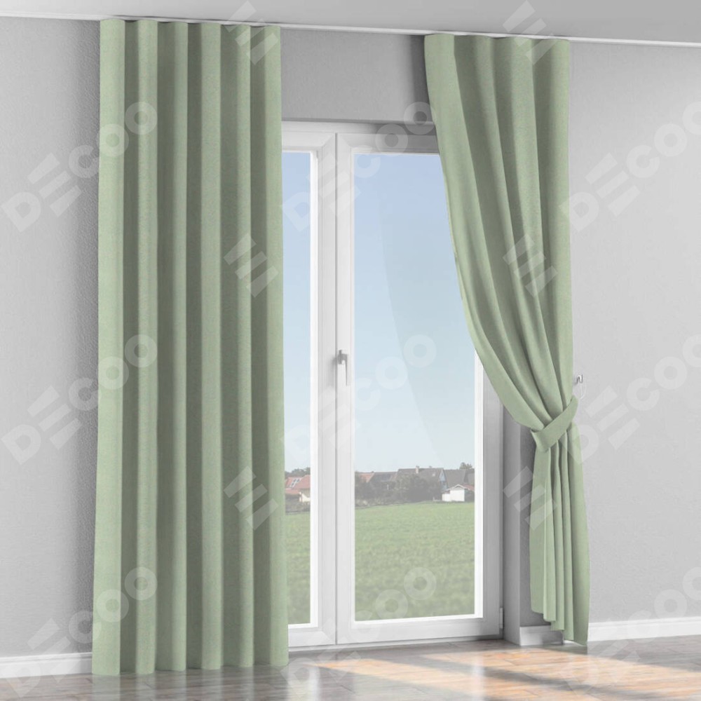 Комплект прямых штор, от производителя «Cortin», пошиты из ткани блэкаут однотонный светло-серый, артикул ткани 29332−2. С изнаночной стороны в верхней части штор пристрачивается шторная лента с декоративными складками «Волна». Для создания элегантных складок прямые шторы шьются по стандарту с коэффициентом 1:2 (на 100 см. ширины проёма 200 см. ширины ткани).