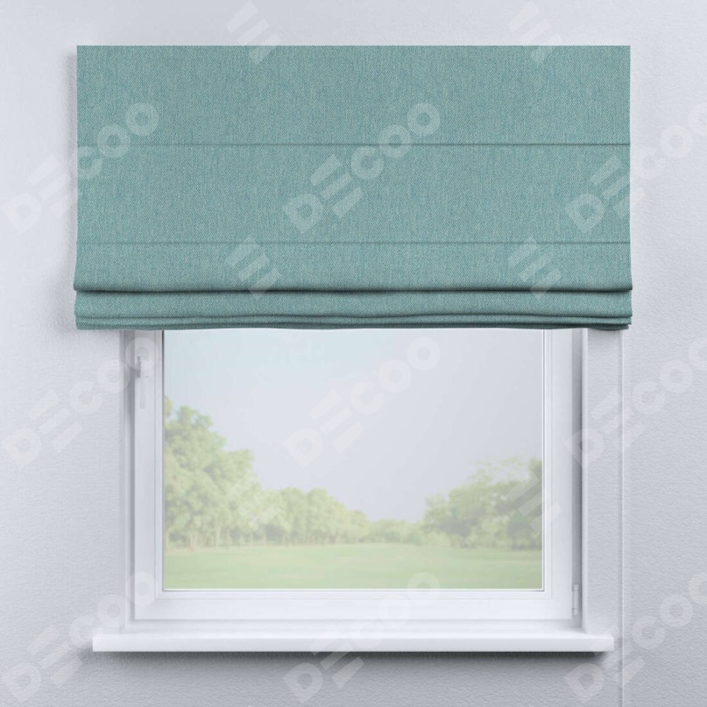 Римская штора производителя «Cortin», используется для проёма, пошита из ткани твид блэкаут небесно-голубой, артикул ткани 21578. Имеет универсальный механизм и подходит для монтажа: на потолок, на стену и в нишу.