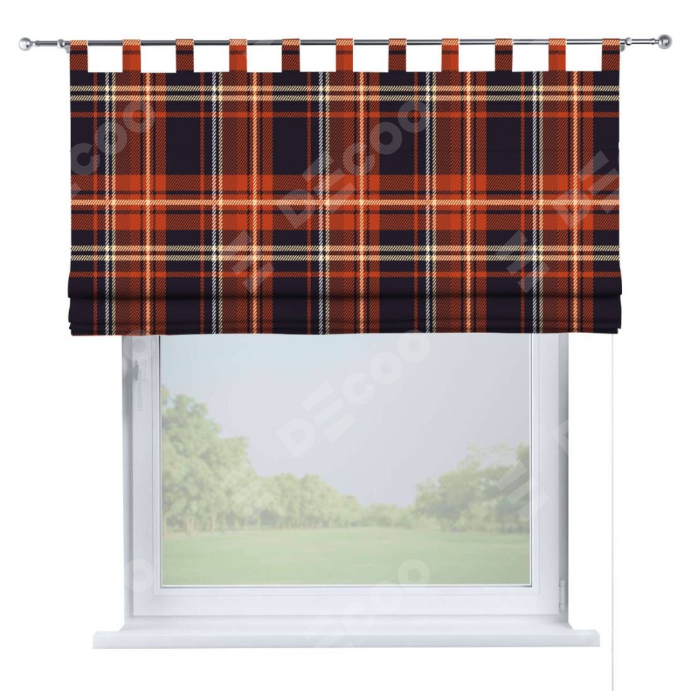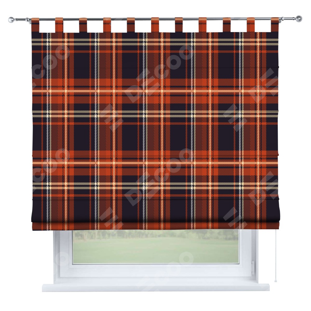 Римская штора производителя «Cortin», используется для проёма, пошита из ткани блэкаут с нанесением сублимационной печати «Сине-оранжевая клетка». Данная модель пошита на петлях, комплектуется на выбор круглым карнизом и подходит для монтажа на стену. Римская штора на петлях имеет простую систему регулировки высоты, отличительным преимуществом данной модели является простой способ монтажа. Достаточно повесить ее на трубу и штора готова!