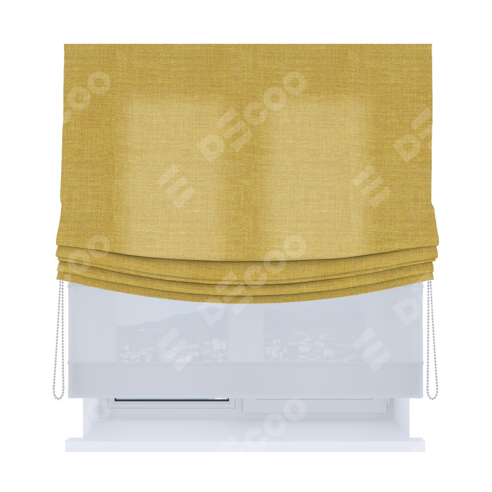 Римская штора день-ночь (двойная) от производителя «Cortin», используется для проёма. Пошита из двух полотен, основная ткань лён горчичный артикул 74740, вторая ткань тюль (по стандарту используется тюль белого цвета артикул V-01). Имеет универсальный механизм и подходит для монтажа: на потолок, на стену и в нишу. Удобное управление каждой шторой отдельно.