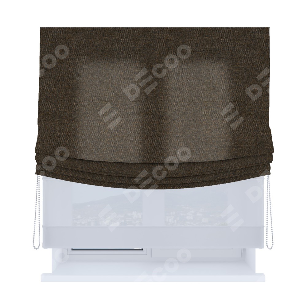 Римская штора день-ночь (двойная) от производителя «Cortin», используется для проёма. Пошита из двух полотен, основная ткань лён тёмно-коричневый артикул 53444, вторая ткань тюль (по стандарту используется тюль белого цвета артикул V-01). Имеет универсальный механизм и подходит для монтажа: на потолок, на стену и в нишу. Удобное управление каждой шторой отдельно.