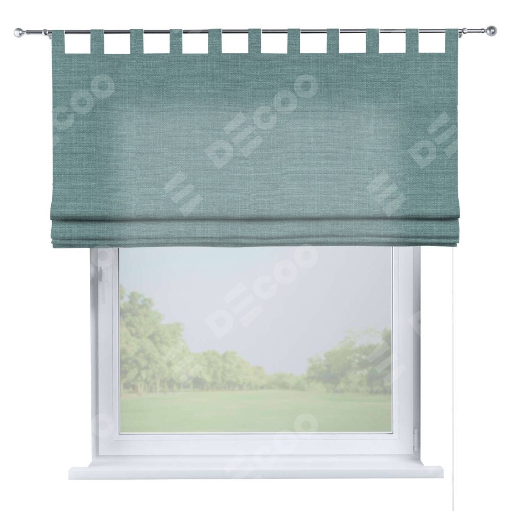 Римская штора производителя «Cortin», используется для проёма, пошита из ткани лён голубой, артикул ткани 74736. Данная модель пошита на петлях, комплектуется на выбор круглым карнизом и подходит для монтажа на стену. Римская штора на петлях имеет простую систему регулировки высоты, отличительным преимуществом данной модели является простой способ монтажа. Достаточно повесить ее на трубу и штора готова!