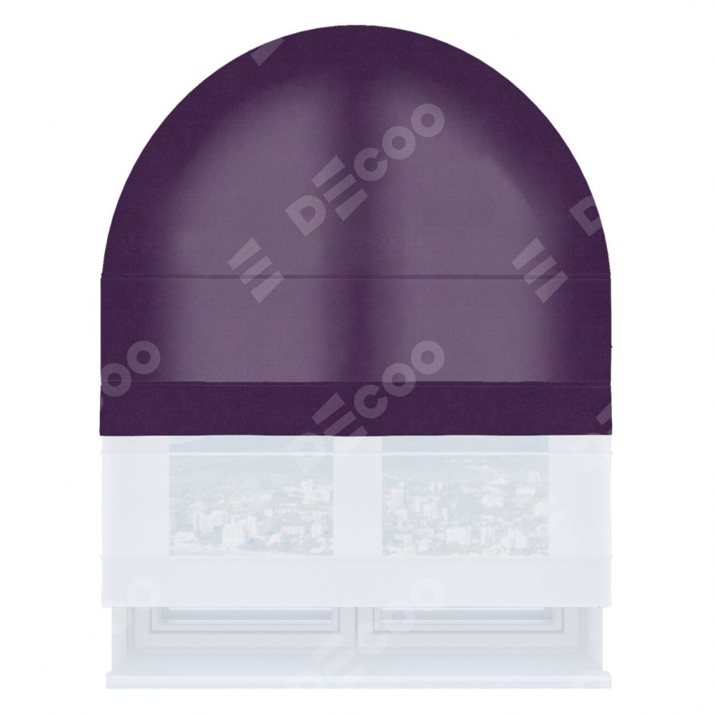 Римская штора день-ночь производителя «Cortin», используется для арочного проёма, пошита из двух полотен, с лицевой стороны вельвет тёмно-фиолетовый артикул 17753, вторая ткань тюль (по стандарту комплектуется тюль белого цвета артикул V-01). Штора шьётся по индивидуальным размерам, для данного типа римской шторы возможная ширина от 60 до 300 см. Удобное управление каждой шторой отдельно.