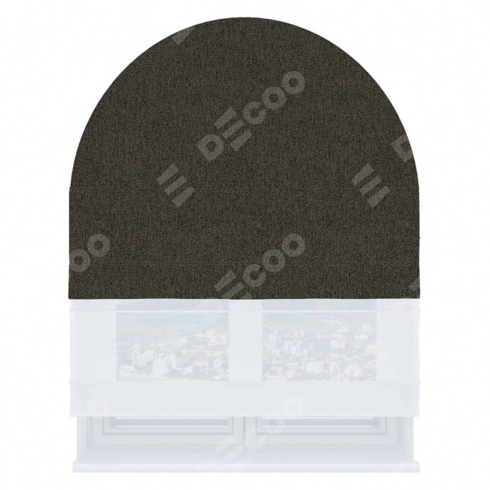 Римская штора день-ночь производителя «Cortin», используется для арочного проёма, пошита из двух полотен, с лицевой стороны твид блэкаут тёмно-коричневый артикул 21584, вторая ткань тюль (по стандарту комплектуется тюль белого цвета артикул V-01). Штора шьётся по индивидуальным размерам, для данного типа римской шторы возможная ширина от 60 до 300 см. Удобное управление каждой шторой отдельно.