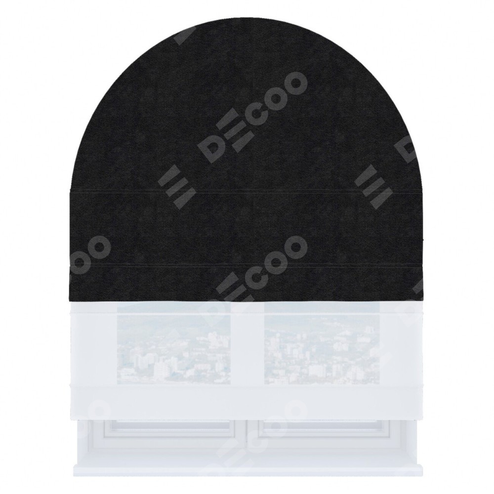 Римская штора день-ночь производителя «Cortin», используется для арочного проёма, пошита из двух полотен, с лицевой стороны cotton блэкаут тёмно-серый артикул 35282, вторая ткань тюль (по стандарту комплектуется тюль белого цвета артикул V-01). Штора шьётся по индивидуальным размерам, для данного типа римской шторы возможная ширина от 60 до 300 см. Удобное управление каждой шторой отдельно.