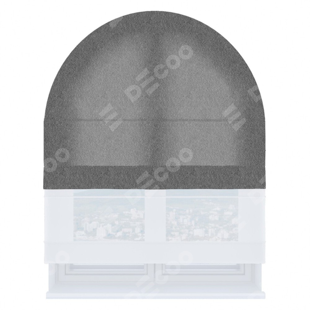 Римская штора день-ночь производителя «Cortin», используется для арочного проёма, пошита из двух полотен, с лицевой стороны софт однотонный серый артикул 70605, вторая ткань тюль (по стандарту комплектуется тюль белого цвета артикул V-01). Штора шьётся по индивидуальным размерам, для данного типа римской шторы возможная ширина от 60 до 300 см. Удобное управление каждой шторой отдельно.
