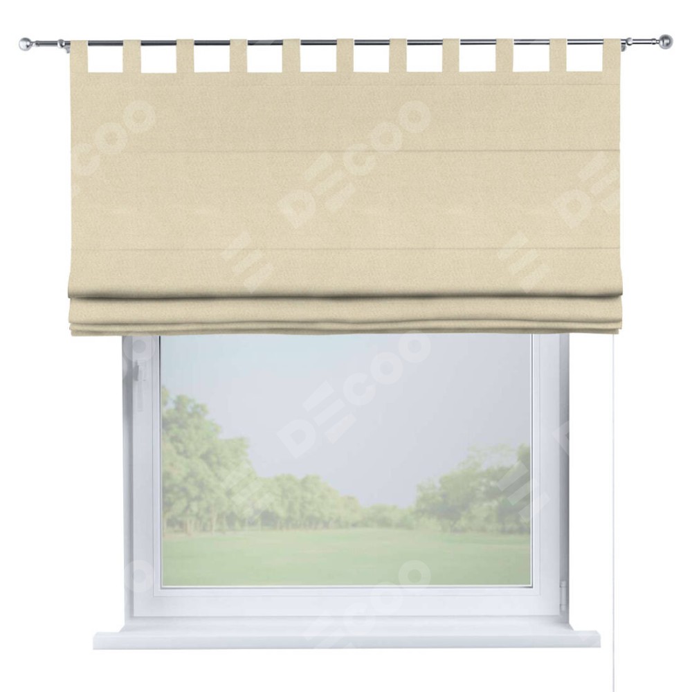 Римская штора производителя «Cortin», используется для проёма, пошита из ткани блэкаут однотонный бежевый, артикул ткани 13125. Данная модель пошита на петлях, комплектуется на выбор круглым карнизом и подходит для монтажа на стену. Римская штора на петлях имеет простую систему регулировки высоты, отличительным преимуществом данной модели является простой способ монтажа. Достаточно повесить ее на трубу и штора готова!