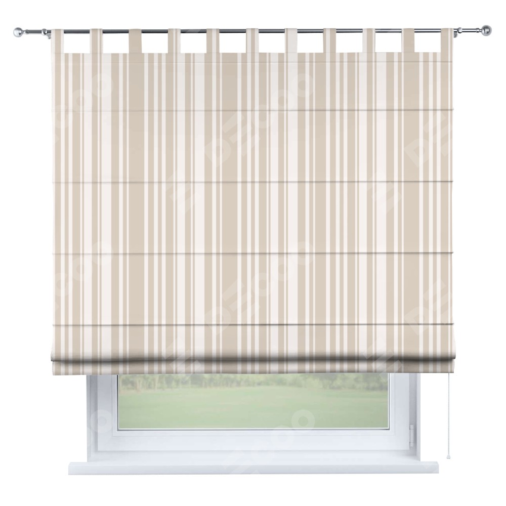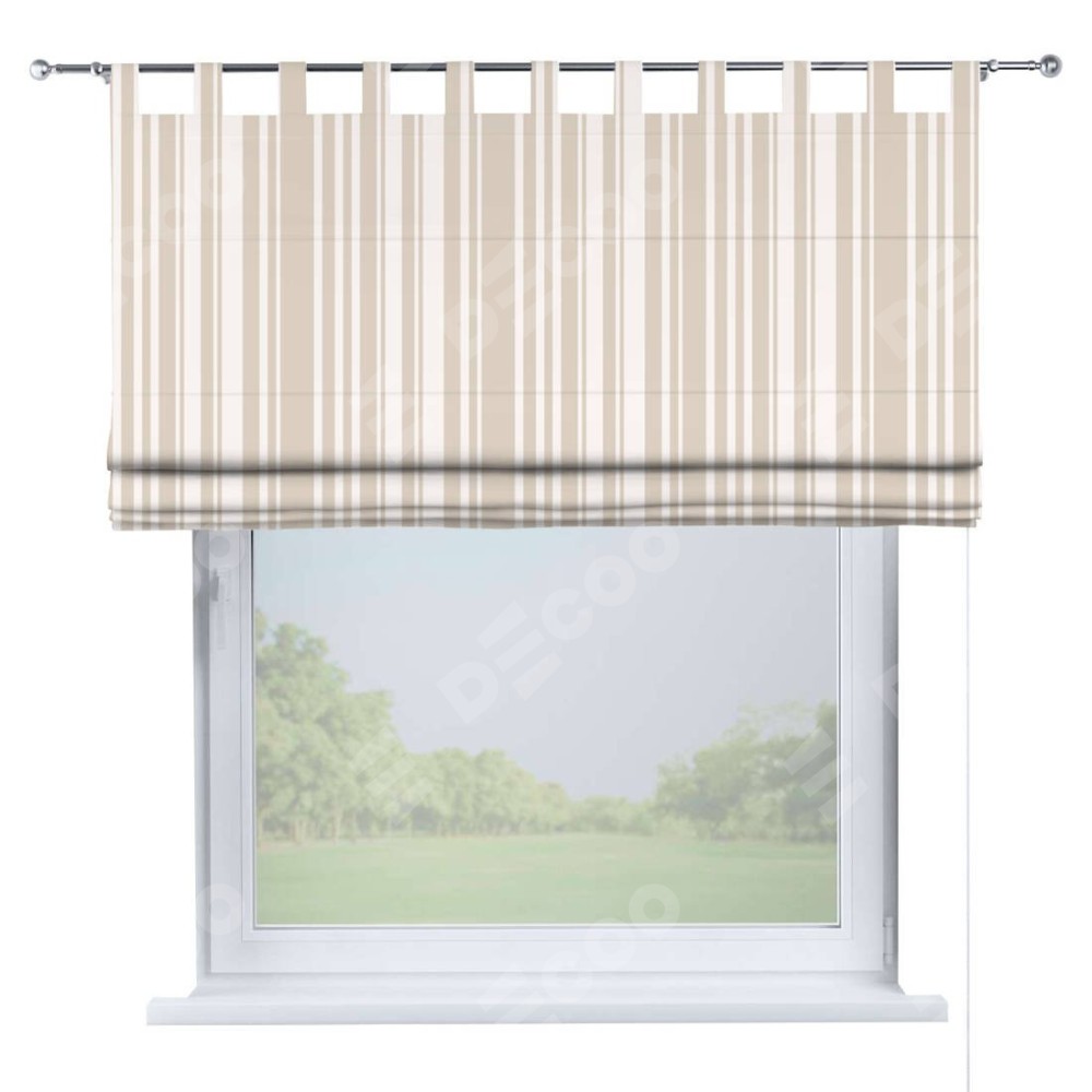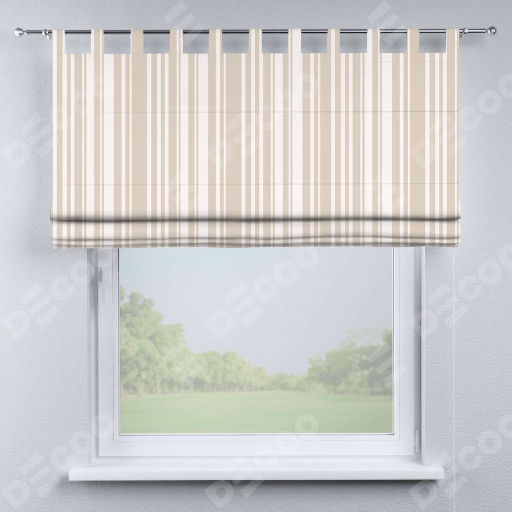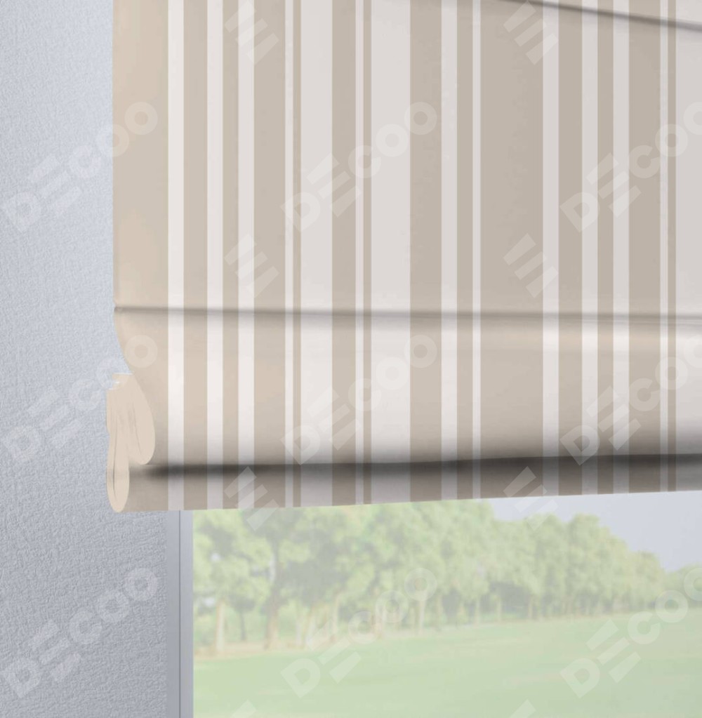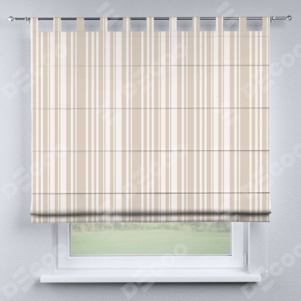 Римская штора производителя «Cortin», используется для проёма, пошита из ткани блэкаут с нанесением сублимационной печати «Бежевые вертикальные полоски». Данная модель пошита на петлях, комплектуется на выбор круглым карнизом и подходит для монтажа на стену. Римская штора на петлях имеет простую систему регулировки высоты, отличительным преимуществом данной модели является простой способ монтажа. Достаточно повесить ее на трубу и штора готова!