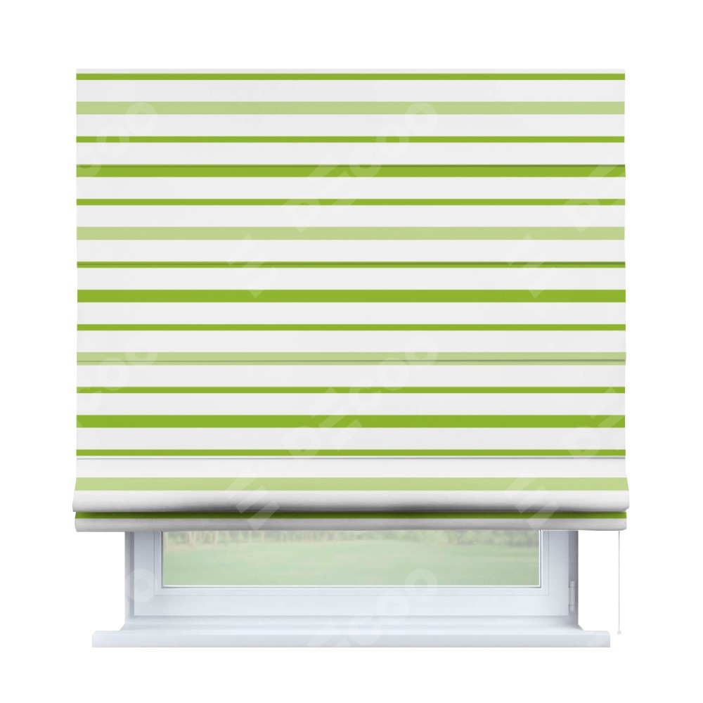 Римская штора «Кортин» для проема «Зелёные горизонтальные полоски» предоставлена в следующих характеристиках: