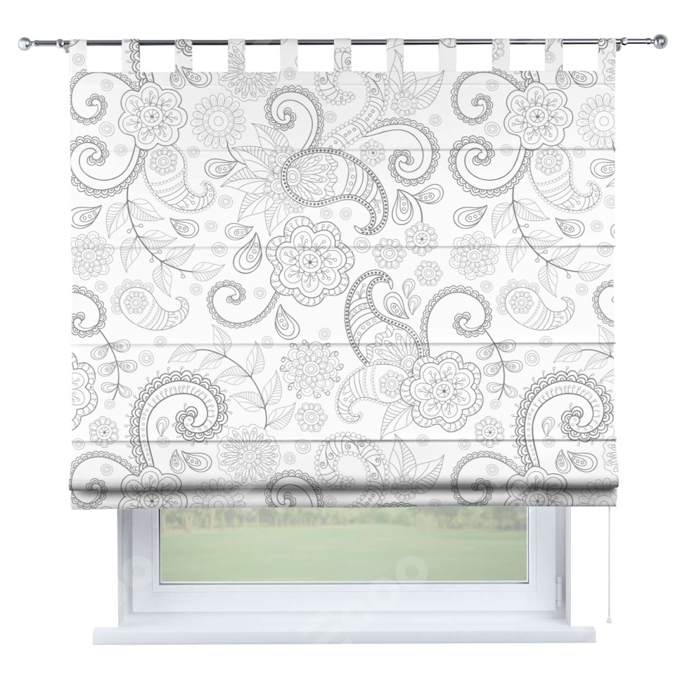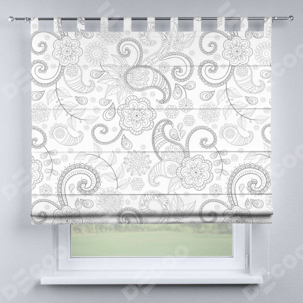 Римская штора производителя «Cortin», используется для проёма, пошита из ткани блэкаут с нанесением сублимационной печати «Изысканный пейсли». Данная модель пошита на петлях, комплектуется на выбор круглым карнизом и подходит для монтажа на стену. Римская штора на петлях имеет простую систему регулировки высоты, отличительным преимуществом данной модели является простой способ монтажа. Достаточно повесить ее на трубу и штора готова!