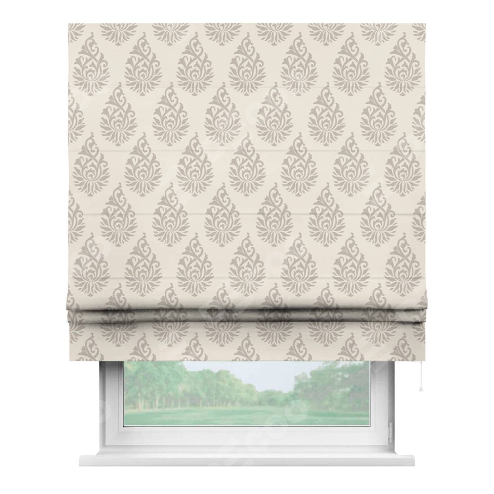 Римская штора производителя «Cortin», используется для проёма, пошита из ткани блэкаут с нанесением сублимационной печати «Изящный кулон». Имеет универсальный механизм и подходит для монтажа: на потолок, на стену и в нишу.