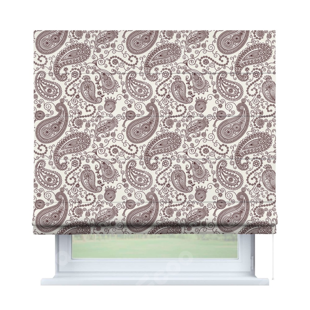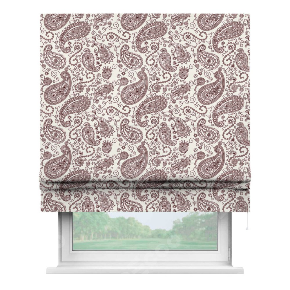 Римская штора производителя «Cortin», используется для проёма, пошита из ткани блэкаут с нанесением сублимационной печати «Индийский узор». Имеет универсальный механизм и подходит для монтажа: на потолок, на стену и в нишу.