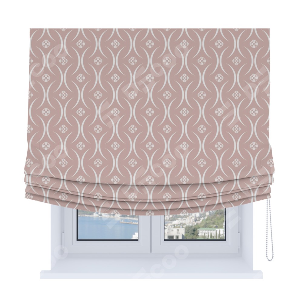Римская штора Soft производителя «Cortin», используется для проёма, пошита из ткани блэкаут с нанесением сублимационной печати «Воздушный узор бежевый». Имеет универсальный механизм и подходит для монтажа: на потолок, на стену и в нишу. В отличие от стандартных римских штор, римская штора Soft не имеет горизонтальных вставок и нижнего отвеса. Это позволяет ткани произвольно драпироваться в свободные мягкие складки.