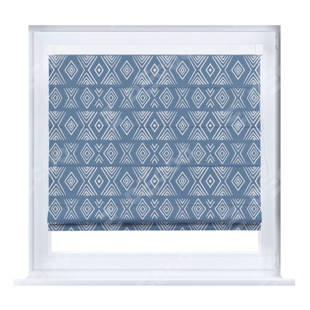 Римская штора производителя «Cortin», устанавливается на створку окна, пошита из ткани блэкаут с нанесением сублимационной печати «Графический орнамент». Штора шьётся по индивидуальным размерам, для данного типа римской шторы возможная ширина от 35 до 150 см., высота до 250 см.