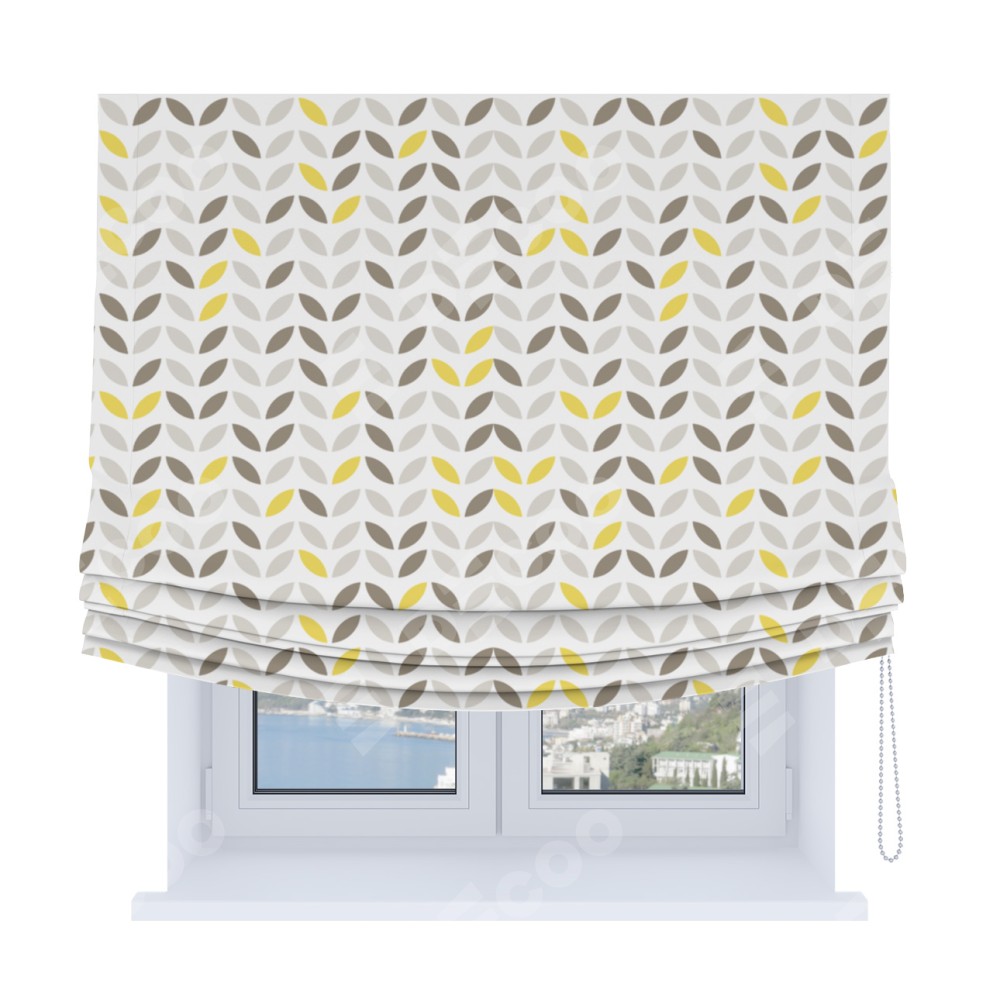 Римская штора Soft производителя «Cortin», используется для проёма, пошита из ткани блэкаут с нанесением сублимационной печати «Маленькие листочки». Имеет универсальный механизм и подходит для монтажа: на потолок, на стену и в нишу. В отличие от стандартных римских штор, римская штора Soft не имеет горизонтальных вставок и нижнего отвеса. Это позволяет ткани произвольно драпироваться в свободные мягкие складки.